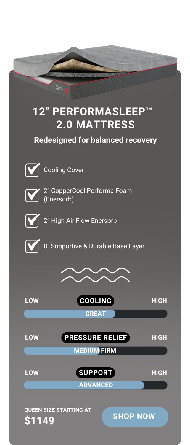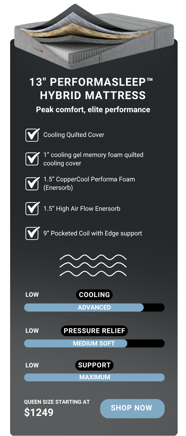 Those who are seeking the ultimate in deep, pressure-relief for maximum recovery speeds love the Performasleep™ Hybrid Mattress.